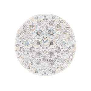 5'1"x5'1" Round Ivory Silk With Textured Wool Tabriz Vase With Pomegranate Design Hand Knotted Oriental Rug FWR373716