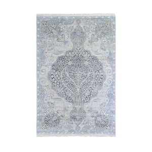 6'x9'2" Ivory Silk With Textured Wool Tree Of Life Meditation Design Hand Knotted Oriental Rug FWR398130