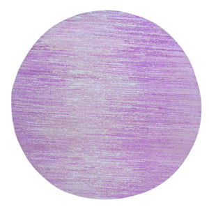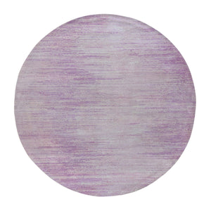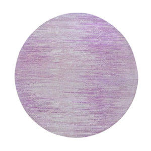 9'x9' Pink Zero Pile Organic Wool Only Horizontal Ombre Design Hand Knotted Round Oriental Rug FWR400212