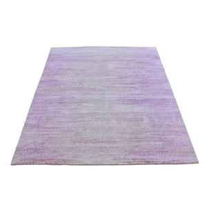 6'1"x9'2" Pink Thick And Plush Organic Wool Only Horizontal Ombre Design Hand Knotted Oriental Rug FWR400182