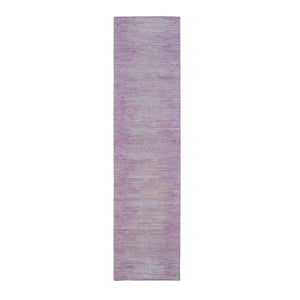 2'7"x10'3" Pink Thick And Plush Organic Wool Only Horizontal Ombre Design Hand Knotted Wide Runner Oriental Rug FWR400524
