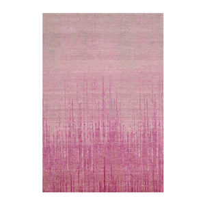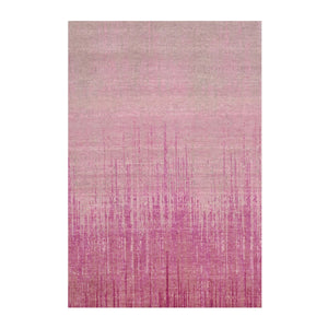 4'1"x6'2" Hand Knotted Pink Vertical Ombre Design Natural Wool Oriental Rug FWR450132