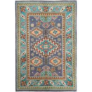 2'8"x4' Medium Purple, Kazak With Geometric Design, Vegetable Dyes, Hand Knotted, Soft And Shiny Wool, Denser Weave, Sample, Mat, Oriental Rug FWR2370