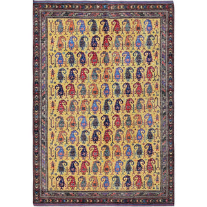 6'1"x8'10" Macaroon Yellow, Afghan Ersari With Turkish Knot, Caucasian Design Revival, Small Human Figurines, Vegetable Dyes, Hand Knotted, Soft Wool, Oriental Rug FWR3444