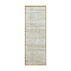 2'8"x8'2" Daisy White With Golden Yellow, Hand Knotted, Oxidized And Distressed Grass Design With Exposed Warps, 100% Wool, Runner, Oriental Rug FWR457650