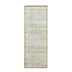 2'8"x6' Vista White With Nugget Gold, 100% Wool, Oxidized And Distressed Grass Design With Exposed Warps, Hand Knotted, Runner, Oriental Rug FWR457644