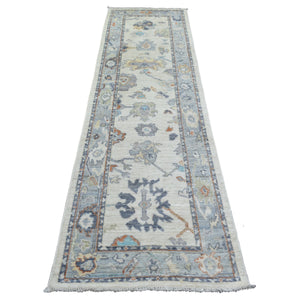 2'10"x11'6" Sky Blue, Afghan Angora Oushak With Colorful Pattern Natural Dyes, Pure Wool Hand Knotted, Runner Oriental Rug FWR445014