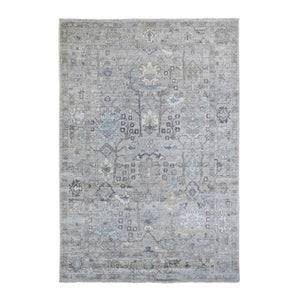 6'1"x9' Steely Gray, Hand Knotted Natural Dyes Afghan Angora Oushak All Over Vines And Motifs, Vibrant Wool Oriental Rug FWR531156