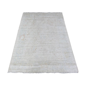 4'1"x5'9" Stargazer Gray, Afghan Angora Oushak With Soft Colors, Vibrant Wool, Hand Knotted Natural Dyes, Oriental Rug FWR531420