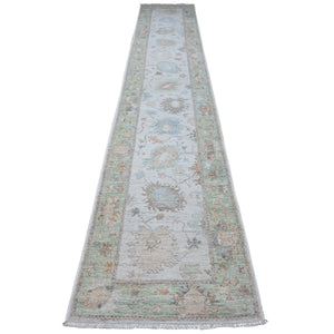 3'x16'4" Baby Blue, Soft Pile, Hand Knotted, Wool Weft, Natural Dyes, Tribal Flower And Leaf Design, Afghan Angora Oushak, Xl Runner Oriental Rug FWR532944