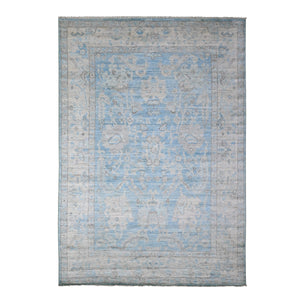 6'2"x8'10" Argentina Blue, Natural Dyes With All Over Rural Floral Design, Hand Knotted Angora Oushak, Wool Weft, Oriental Rug FWR534720