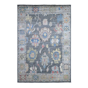 6'3"x9' Timberwolf Gray, Hand Knotted With Wool Weft, Natural Dyes, Colorful Village Flower And Leaf Design, Afghan Angora Oushak, Oriental Rug FWR534726