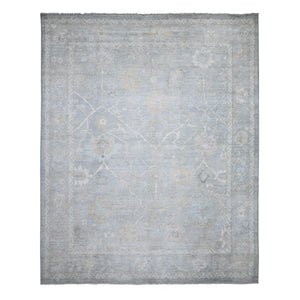 8'1"x10' Blue Gray, Hand Knotted With Natural Dyes, Wool Weft, Rural Flower Pattern All Over, Afghan Angora Oushak, Oriental Rug FWR534936