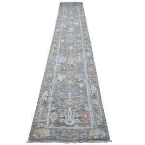 3'x15'7" Chameleon Gray, Soft Pile, Afghan Wool Weft, Hand Knotted, Vegetable Dyes, Tribal Flowers All Over Pattern, Angora Oushak, Oversized Runner Oriental Rug FWR537816