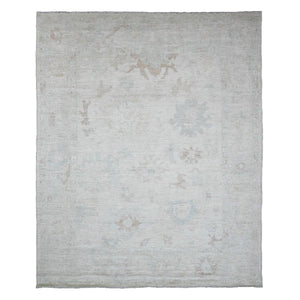 8'x9'7" Misty Gray, Afghan Angora Oushak With Leaf Design, Natural Dyes, Pure Wool, Hand Knotted, Oriental Rug FWR538596