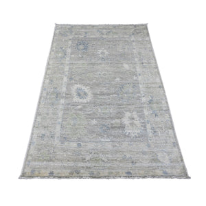 4'x6' Oyster Gray, Hand Knotted, Afghan Angora Oushak With Serrated Leaf Design, Natural Dyes, 100% Wool, Oriental Rug FWR120396