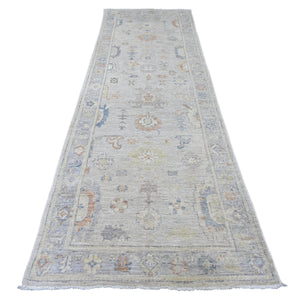 3'x10'6" Medium Gray, Afghan Angora Oushak With Floral Pattern, Hand Knotted, Vegetable Dyes, 100% Wool, Runner, Oriental Rug FWR122880
