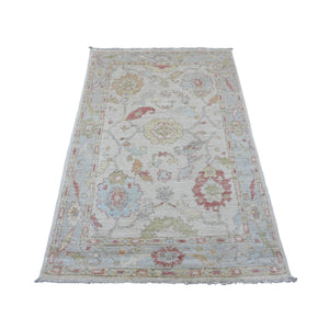 2'2"x3' Pearl White, Hand Knotted, Afghan Angora Oushak With Colorful Leaf Pattern, Vegetable Dyes, Pure Wool, Mat, Oriental Rug FWR124626
