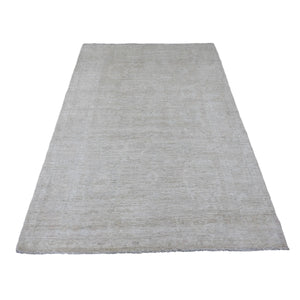 4'9"x7' Pearl White, Pure Wool, Afghan Angora Oushak With All Over Leaf Design, Hand Knotted, Vegetable Dyes, Oriental Rug FWR124680