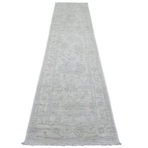 2'9"x9'7" Moonstruck Gray, Hand Knotted, Afghan Angora Oushak With All Over Vines Design, Veggie Dyes, 100% Wool, Runner, Oriental Rug FWR124716