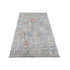 2'10"x5'10" Medium Gray, Hand Knotted, Afghan Angora Oushak With Large Leaf Design, Vegetable Dyes, Pure Wool, Short Runner, Oriental Rug FWR124764