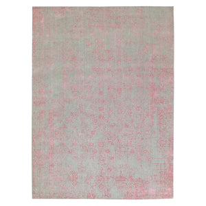 10'x14'1" Pink Wool And Art Silk Transitional Design Hand Loomed Jacquard Oriental Rug FWR351486