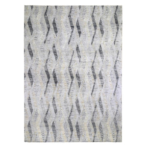 10'x14' Dimensional Curtains Gray Silk With Textured Wool Hand Knotted Oriental Rug FWR354918