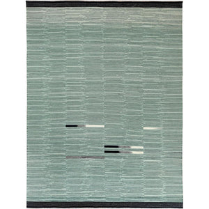 10'2"x14' Light Green Nomadic Stripe Design Flat Weave Kilim Organic Wool Hand Woven Reversible Oriental Rug FWR360210