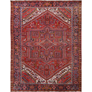 10'1"x12'9" Ajax Red, Semi Antique Persian Heriz With Tribal Ambience, Good Condition, Distressed Look, Pure Wool, Hand Knotted, Oriental Rug FWR513372