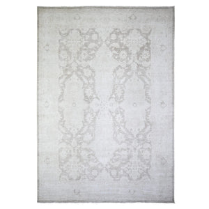 10'1"x14'4" Silver Chalice, White Wash Peshawar With Khotan Design, Organic Wool, Hand Knotted, Oriental Rug FWR448008