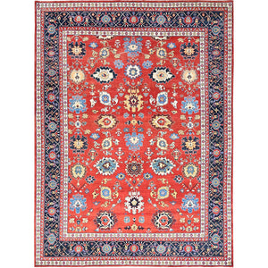 9'9"x13' Crimson Red, Afghan Peshawar With Serapi Heriz Design, Hand Knotted, Pure Wool, Natural Dyes, Dense Weave, Oriental Rug FWR512640