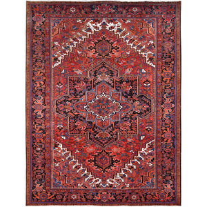 9'8"x13' Imperial Red, Pure Wool, Hand Knotted, Semi Antique Persian Heriz, Good Condition, Distressed Feel, Evenly Worn, Oriental Rug FWR513504