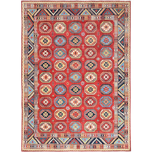 10'x13'10" Cardinals Red, Afghan Ersari With Elephant Feet Design, Hand Knotted, Natural Dyes, Natural Wool, Oriental Rug FWR513540
