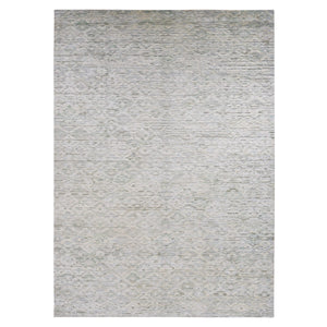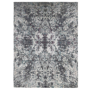 9'10"x14' Silk Gray, Broken And Erased Mamluk Design, Hand Loomed, Wool And Silk, Oriental Rug FWR522672