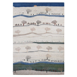 10'x14' Ivory, Hand Knotted, Persian Folk Art Gabbeh, Scenery, Tree And Desert Design, Thick And Plush, Pure Wool, Oriental Rug FWR525474