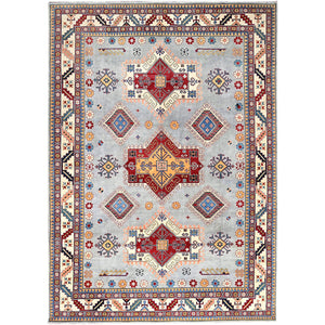 9'10"x13'8" Ice Gray, Hand Knotted Special Kazak Geometric Design, Extra Soft Wool With Vegetable Dyes, Oriental Dense Weave Rug FWR517278