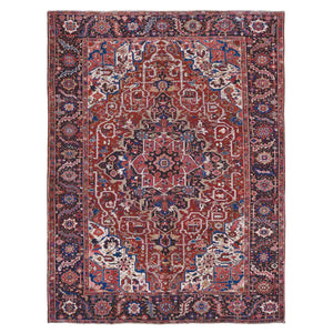 9'8"x12'10" Crimson Red, Antique Persian Heriz, Rosette And Serrated Leaf Design Border, Hand Knotted, Pure Wool, Clean, Sides And Ends Professionally Secured, Oriental Rug FWR527598
