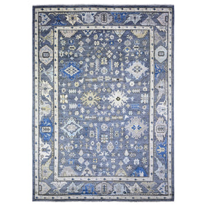 9'9"x13'5" Glaucous And Oxford Blue, Natural Wool, Hand Knotted, Afghan Angora Oushak All Over Design, Vegetable Dyes, Oriental Rug FWR528438