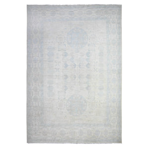 10'x13'9" Moonlight White, Plain Decor Modern Box Design, Loom Knotted 100% Undyed Natural Wool, Oriental Rug FWR542046