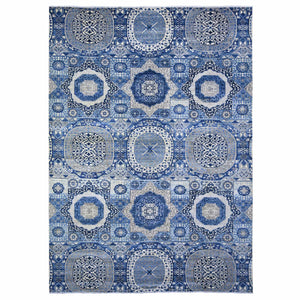 10'x13'8" Sapphire Blue, Dense Weave Vegetable Dyes, Soft Wool Hand Knotted, Fine Aryana With Mamluk Borderless Design, Oriental Rug FWR529254