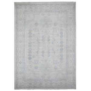 9'8"x13'1" Shoreline Gray, Hand Knotted, Soft Wool, White Wash Peshawar, Distressed, Oriental Rug FWR531486