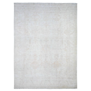 9'7"x13'10" City Loft White, Faded Washed Out Peshawar, Hand Knotted, Organic Wool, Oriental Rug FWR531570