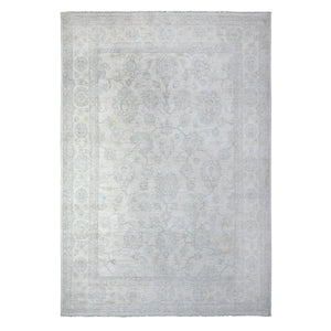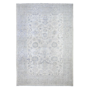 9'8"x13'6" Daisy White, Hand Knotted, Luxurious Wool, White Wash Peshawar, Pomegranate Design, Oriental Rug FWR531348