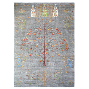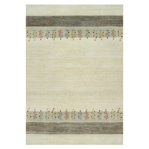 9'8"x14' Heron White, Thick And Plush Modern Gabbeh Lori Buft Tree Design, Extra Soft Wool, Hand Knotted Oriental Rug FWR542328