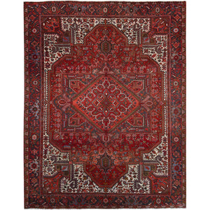 9'10"x12'6" Sceptre Red, Cleaned, Good Condition, Pure Wool, Ends And Sides Secured, Semi Antique Tribal Weaving Persian Heriz With Centre Flower Pattern, Oriental Rug FWR1002