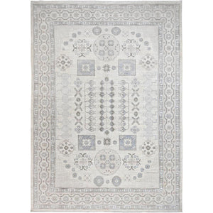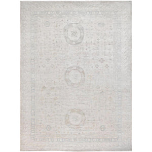 9'10"x13'10" Dove White, White Wash Peshawar, Natural Dyes, Hand Knotted, Extra Soft Wool, Samarkand Inspired Design, Oriental Rug FWR519120