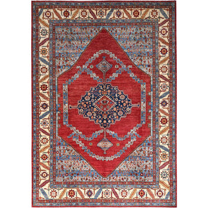 10'1"x14' Summer Fig Red, Densely Woven, Heriz All Over Design, Vegetable Dyes, Hand Knotted, Organic Wool, Oriental Rug FWR519456