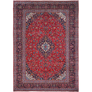 10'1"x13' Angels Red, Blue Border And Corners, Old Persian Kashan Hand Knotted Medallion Design, Nomad Creation, Full Pile, Vegetable Dyes, All Wool Oriental Rug FWR520182