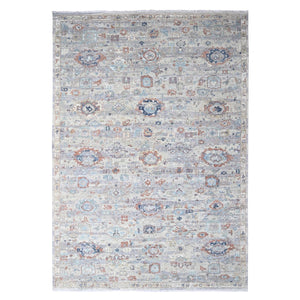 9'10"x13'9" Celeste Blue, Shah Abbas Flower Pattern, Natural Dyes, Denser Weave, Traditional Agra Design, Pure Wool, Hand Knotted, Oriental Rug FWR456732