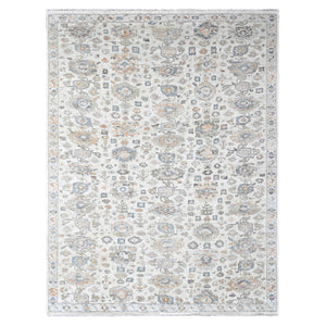 10'2"x14' Alabaster White, Wool And Silk, Nain With All Over Flower Design, 250 Kpsi, Hand Knotted, Oriental Rug FWR546342